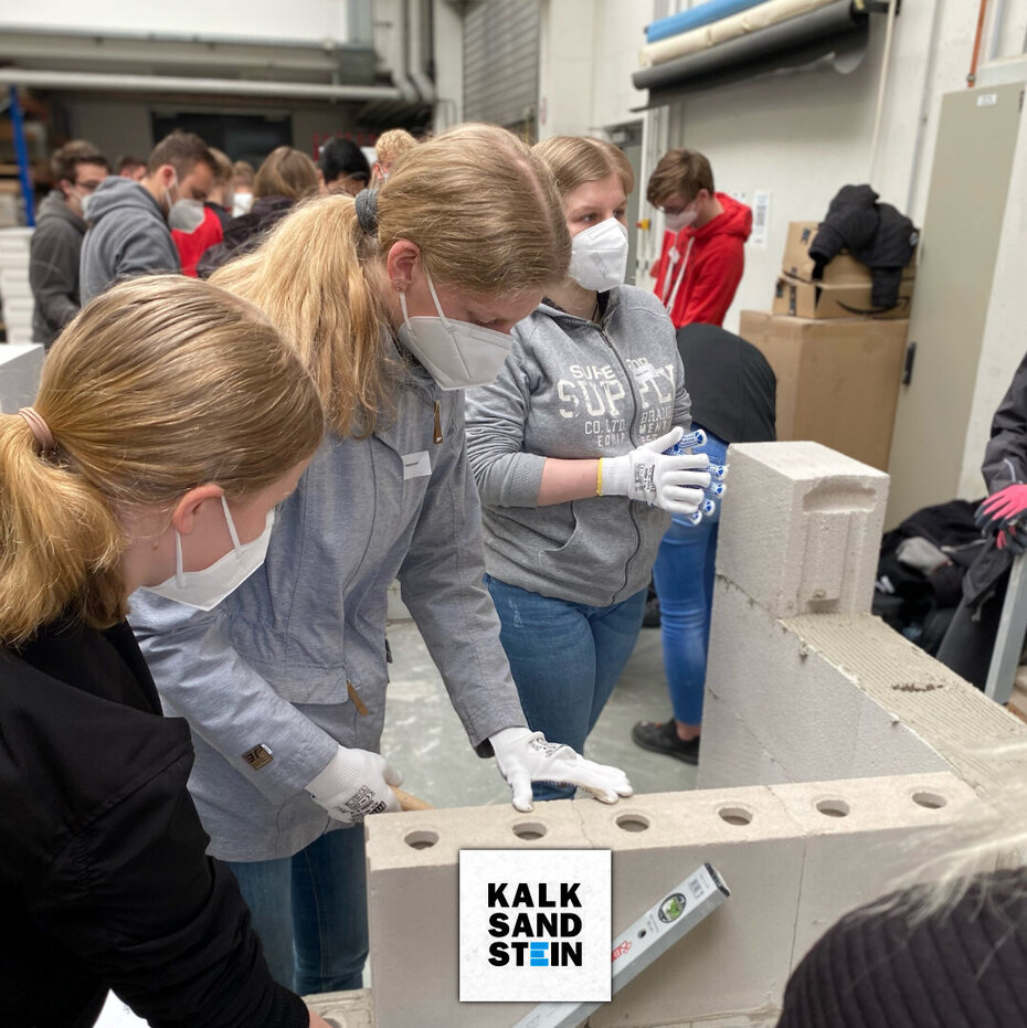 Wie man die Theorie aus dem Hörsaal in der Praxis umsetzt, vermittelt der „Tag des Mauerwerks“, den die Kalksandsteinindustrie mit ihren Kooperationspartnern mehrmals im Jahr an unterschiedlichen Hochschulen und Universitäten organisiert. Nach einem Vortrag zum Baustoff Kalksandstein geht es für die Studierenden „auf die Baustelle“. In kleinen Teams müssen die Architekten und Bauingenieure in spe ihr Können auf ungewohntem Terrain unter Beweis stellen. Innerhalb von zwei Stunden gilt es, eine einfache Wandkonstruktion in mehreren Schichten zu mauern. Erfahrene Maurermeister sowie Vertreter der Kalksandsteinindustrie stehen bei Fragen mit Rat und Tat zur Seite. Die besten Arbeiten werden am Ende des Tages prämiert und jeder Teilnehmer erhält ein kleines Überraschungspaket.