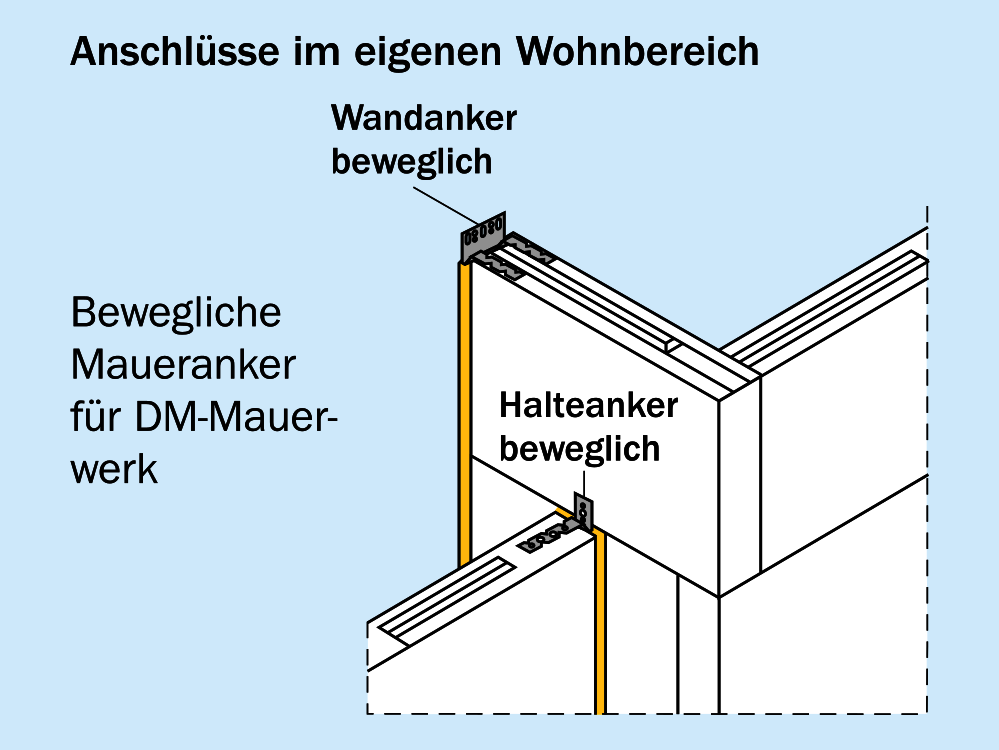 Anker sind wichtige Elemente für die Herstellung stabiler Verbindungen von KS-Bauelementen oder mit Stumpfstoßtechnik verbundenen Wänden.