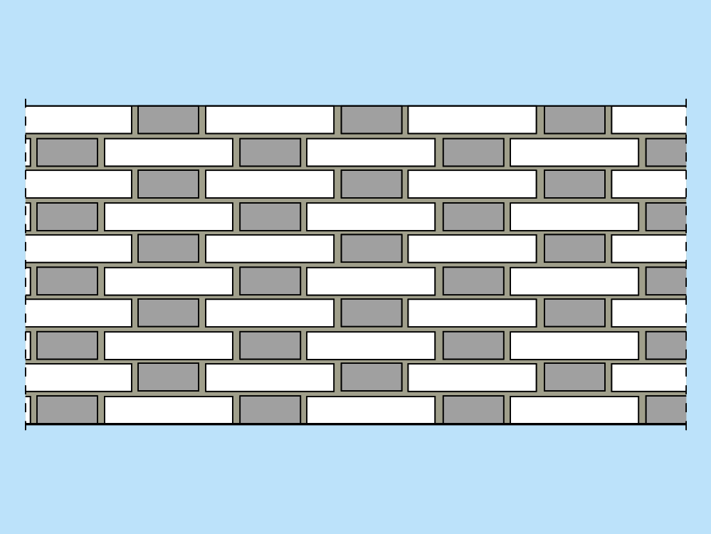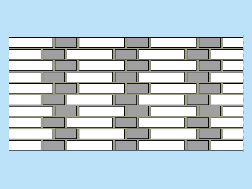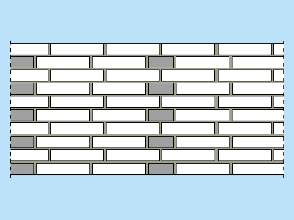 Beim Sichtmauerwerk, bei Verblendschalen oder Ein-Stein-Mauerwerk mit einer Steinreihe je Schicht wird im Allgemeinen ein Läuferverband ausgeführt. Zur Verbesserung der Rissesicherheit ist ein Mauerverband mit 1/2-steiniger Überdeckung einem Verband mit 1/4-steiniger Überdeckung vorzuziehen.