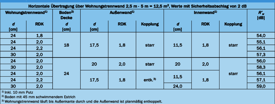 Empfehlungen für den gegenüber den Mindestschallschutz erhöhten Schallschutz enthält die nebenstehende Tabelle.