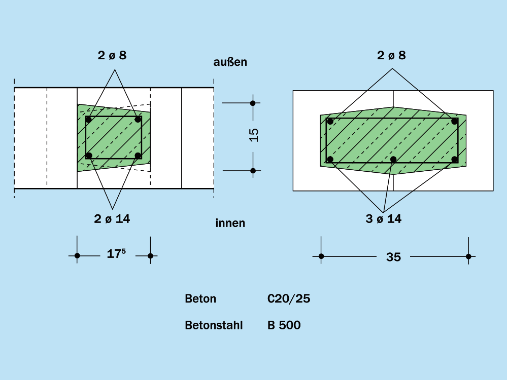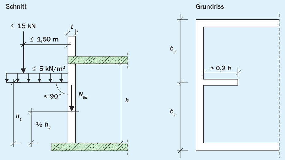 - Für den Nachweis von Kellerwänden gelten die Voraussetzungen siehe unten "Bemessung von Kelleraußenwänden".