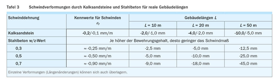 Ein Schwindmaß von -0,1 mm/m ist daher in vielen Fällen baupraktisch erreichbar, da in der Regel auf Baustellen trockene bzw. evtl. nur oberflächenfeuchte Steine verarbeitet werden. Riss erzeugend wirken vor allem Dehnungsdifferenzen der einzelnen Bauteile und nicht die absolute Verformung eines Einzelbauteils.