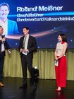 Bild 07: Rundum glücklich und zufrieden: Geschäftsführer Roland Meißner (m.) bei seinen Dankes- und Schlussworten mit den Moderatoren des Festabends Lisa Halada und Thomas Gerres.