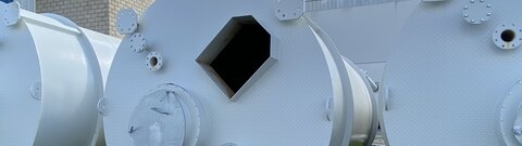 Über eine Förderanlage wird das Gemisch aus Kalk, Sand und Wasser in Reaktoren (Siloanlagen) geleitet.