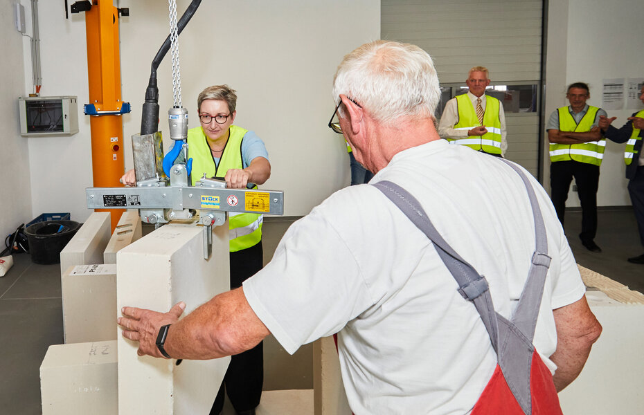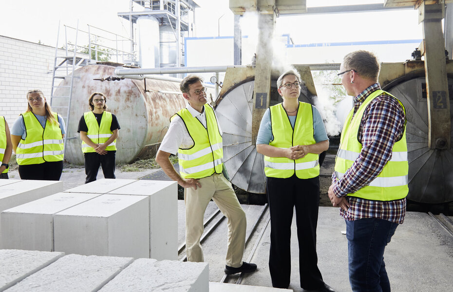 Unter dem Motto „Zukunft nachhaltig bauen“ war Bundesbauministerin Klara Geywitz (SPD) während ihrer Sommertour am 15. August 2022 zu Besuch in unserem Mitgliedswerk in Oranienburg-Germendorf. Zu den wichtigsten Themen – material- und technologieoffenes Bauen als Garant für eine nachhaltige Bauwirtschaft sowie Treibhausgasneutralität der Kalksandsteinindustrie – gab es mit Klara Geywitz einen offenen und konstruktiven Austausch. Die Zusage, auch die aktuellen Herausforderungen der Kalksandsteinindustrie zum Bestandteil der politischen Agenda des Bauministeriums zu machen, sieht der Bundesverband Kalksandsteinindustrie e.V. (BV KSI) als positives Signal.