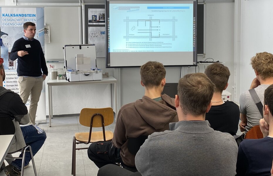 Sebastian Warken, KS-Süd e.V., erklärt den angehenden Bauingenieuren die Eigenschaften der Baustoffe Kalksandstein und Porenbeton